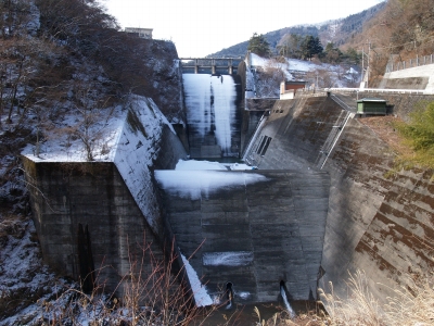 昨晩降った雪の為、うっすら雪化粧の奥多摩ダム |